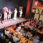 - The cabaret show features dancers, costumes, and lively music that creates a festive atmosphere.