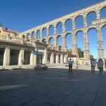 - Incredible views at sunrise over Segovia’s famous aqueduct and Alcázar.